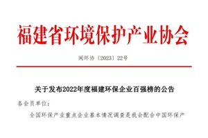2022年度福建环保企业百强榜发布,威廉希尓指数500位列第三