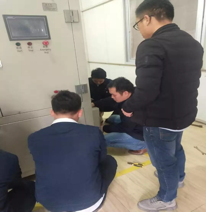 为保证出水水质,邱龙峰厂厂长组织在岗员工更换一期磁悬式鼓风机。此次更换的220kw/h磁悬式鼓风机,功率大,气量多,总体电量降一半且能有效增加生物池曝气,实实在在节约了生产成本。
