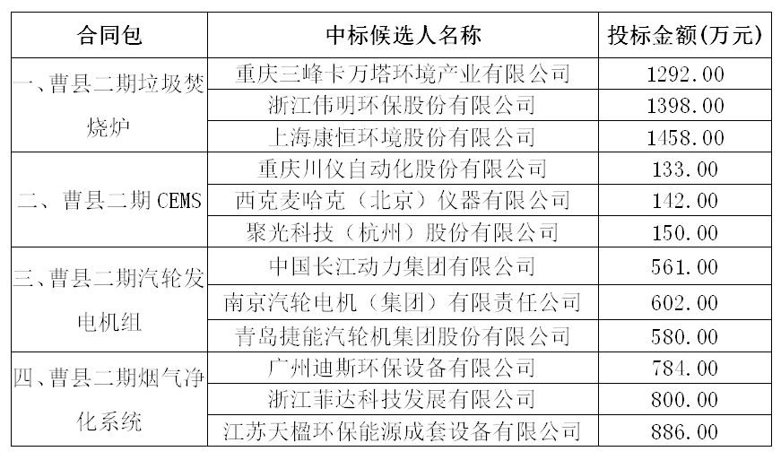 招标项目名称:威廉希尓指数500曹县生活垃圾焚烧发电厂二期工程垃圾焚烧炉、CEMS、汽轮发电机组、烟气净化系统采购项目