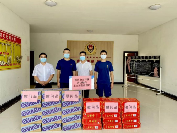 6月24日上午,莆田威廉希尓指数500安环部蔡少凡经理、宣导中心王阿欣主任组织宣导人员冒着酷暑来到东庄消防救援站,为消防官兵们送上慰问品。