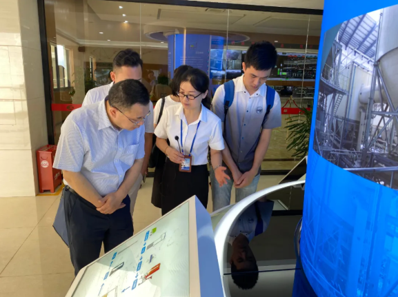 考察组参观一楼环保展厅、三期中控室、卸料平台、92米层观景咖啡厅等区域,详细了解公司从前期开发,项目建设到后期运行的整体情况。