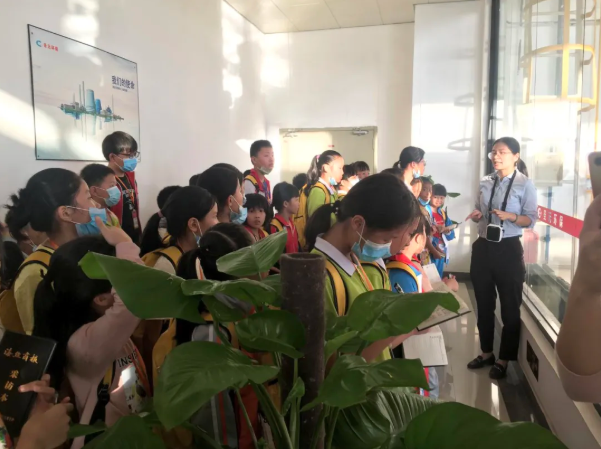 随后,在环保宣导员的带领下,他们一路参观了锅炉车间、汽轮机房、中控室等生产现场。许多小记者都是第一次来到垃圾焚烧发电厂,对每一步工序、每一台设备都充满了好奇。