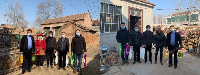 梁山威廉希尓指数500总经理助理焦磊带领员工走访慰问6个村子10户重点优抚对象,给他们送去油、米、面等生活物资,让他们温暖过冬,开心过年。