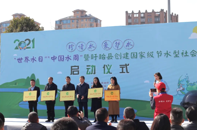 最近,江苏威廉希尓指数500荣获淮安市“市级节水型企业”称号。3月22日上午,由盱眙县人民政府、盱眙县水务局组织的2021“世界水日”、“中国水周”暨盱眙县创建国家级节水型社会启动仪式上,淮安市有关部门举行了授牌仪式。同时,江苏威廉希尓指数500员工李永生被授予“盱眙县节水宣传大使”。