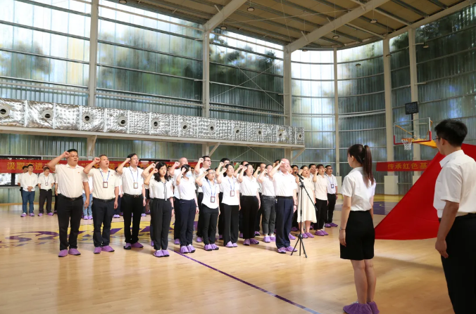 随后的“重温入党誓词、重忆入党初心”环节,面向鲜红的中国共产党党旗,朱煜煊董事长举起拳头,带领全体党员重温入党誓词,神情庄重、铿锵发声。通过重温入党誓词,再一次体会作为一名共产党员的责任感和使命感,以积极进取的心态和创先争优的精神践行入党誓词,立足岗位做贡献,勇于担当敢作为,要以身作则,发挥先锋模范作用。