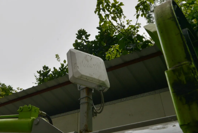 垃圾车的垃圾入口,旁有一个芯片读取装置,会记录每一次收垃圾的数据。