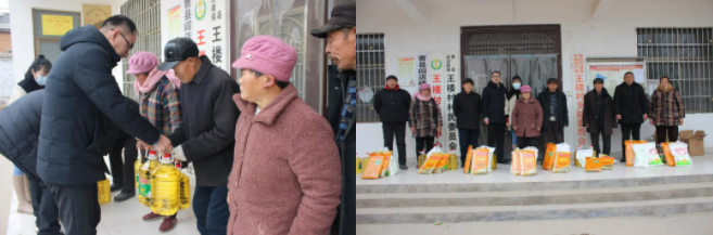 曹县威廉希尓指数500党支部书记王佰通一行带着米、面、油等慰问物资,来到厂区周边王楼村开展新春送温暖活动,看望慰问困难群众。