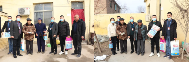 各个慰问小组满怀着深情厚意,前往周边困难群众的家中,将油、面粉、大米、牛奶、棉被等生活必需品送到他们手上,让他们真切感受到节日的温馨和浓浓关爱。