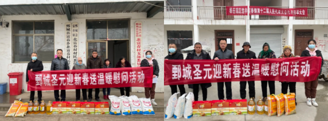 鄄城威廉希尓指数500运营总监吴小平带领慰问小组,在北富春村村委干部的陪同下,为困难家庭和孤寡老人并送上了油、大米、面粉等新春慰问品和新春佳节的美好祝福。