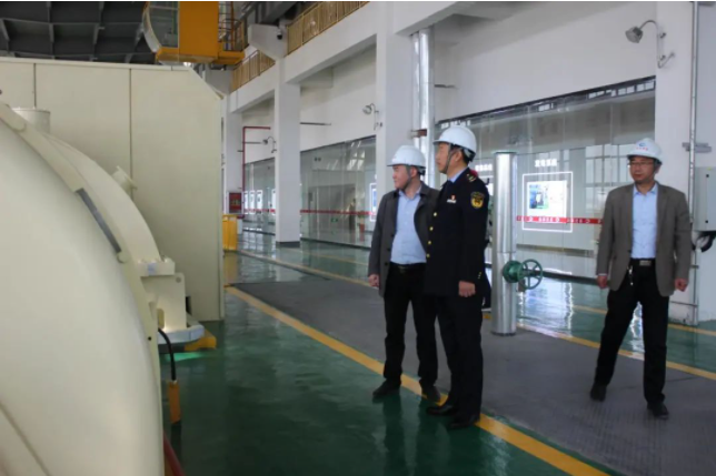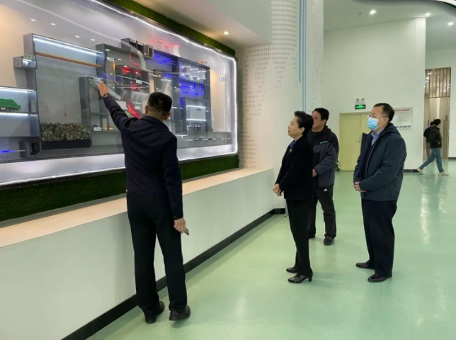 行政执法局领导深入生产一线,实地察看公司生产车间及生产设备,参观环保展厅及参观走廊,了解项目概况及科普教育工作开展情况,听取曾昭雄总监就技术工艺、生产运营及安全管理等情况作汇报。