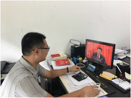 公司党支部组织党员及入党积极分子于公司一楼会议室集中观看十九大开幕式盛况,各子公司、项目部的党员同志也通过网络电视或网络直播平台等方式观看。