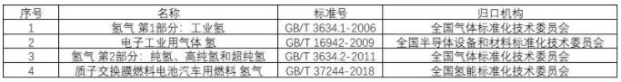 针对不同的氢气制备方法和应用行业要求,国内外不同标准化机构制定了相应的氢气品质标准,国内主要的相关规范如下表。