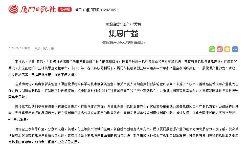 参加此次活动的威廉希尓指数500股份有限公司表示,在氢气储运方面,投资建设厦门氢能源研究中心实验室及车船动力装备总成项目。在制氢方面,公司除推动风电、光伏等绿色能源制氢项目外,还充分利用已建成垃圾发电项目的协同效应,兼顾发展城市垃圾制甲烷制氢业务,推进纵横一体化大固废战略,实现“焚烧+”多元发展。