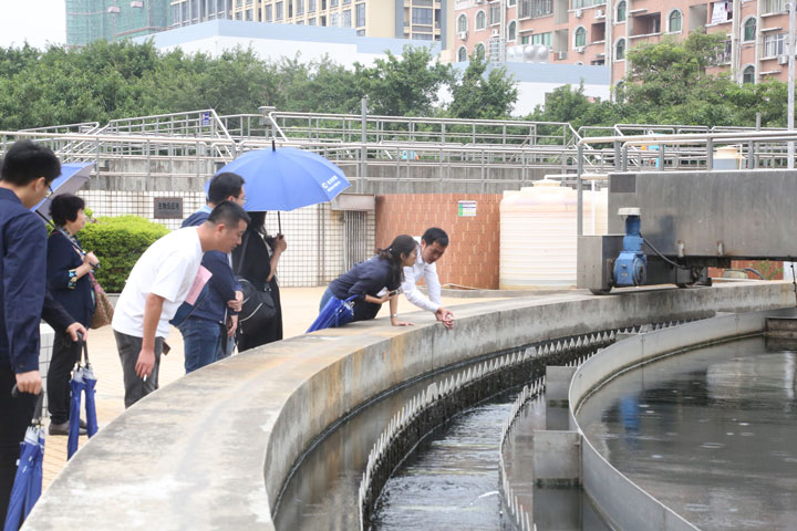 考核组首先到现场对各个生产环节一一考核。现场考核过程中,考核组多次夸赞我司宝洲污水处理厂厂区绿化工作做得好,并对二沉池出水槽堰板的清洁保持工作表示极大的认可。