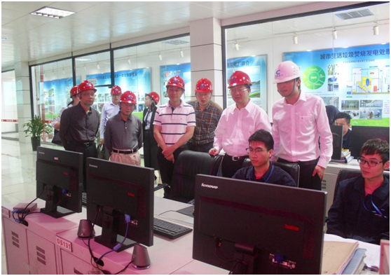 调研组参观我公司南安市垃圾焚烧发电厂中控室