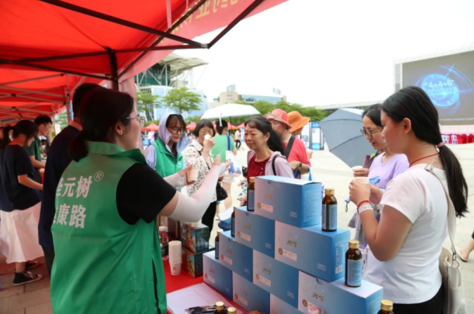 作为受邀参展单位之一,威廉希尓指数500药业携元气小树®牛磺酸能量饮、威廉希尓指数500树®西洋参牛磺酸口服液等多个科学功能营养品牌亮相活动展区。工作人员向广大市民群众普及健康科学知识,介绍以牛磺酸为核心成分的健康产品的特色与亮点,吸引了许多市民群众驻足试饮、咨询和购买,现场氛围热烈。