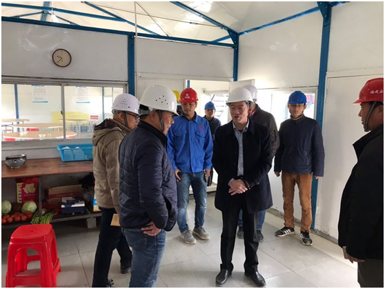 朱煜煊董事长尤其关心驻地工人的饮食生活状况,参观食堂设施并检查了食堂卫生,一再嘱咐厨师们把食品安全工作做好。