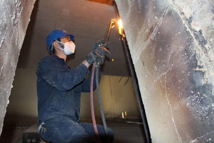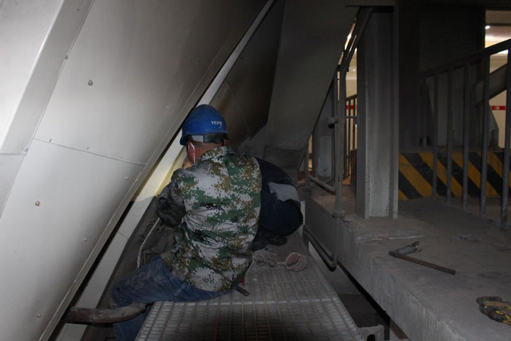 检修人员在炉膛底部作业