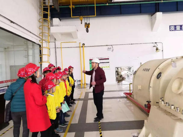 学生及家长们参观一二期汽轮机房