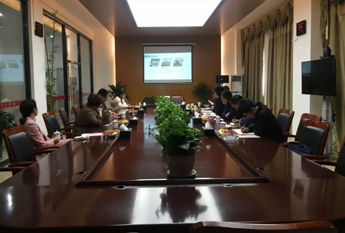 史县长一行在会议室听取汇报