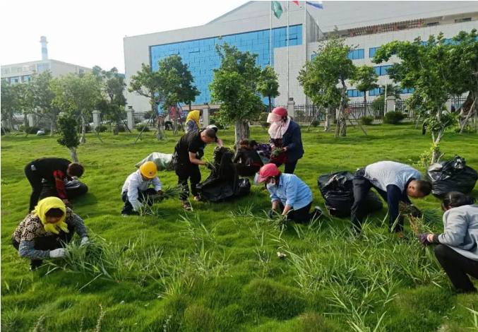 随着雨季临近,厂区内的绿化带杂草丛生,影响厂容厂貌。工会领导部署具体分工后,带领员工亲自动手,对宿舍楼门前到厂区大门的绿化带进行清理。大家不顾天气炎热,戴着手套,挥汗除草,分区域对绿化带草坪进行修整。整个劳动场面热火朝天,井然有序。经过2个小时的辛苦劳作,绿化带内的杂草基本清除干净。看到厂区面貌焕然一新,大家都露出了会心的微笑。