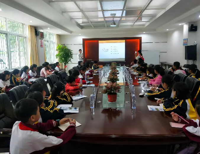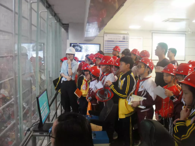 在南安生活垃圾焚烧发电厂会议室,通过ppt和短视频等形式,小记者们了解了生产垃圾转运整个过程和垃圾进厂后处理工艺流程等。