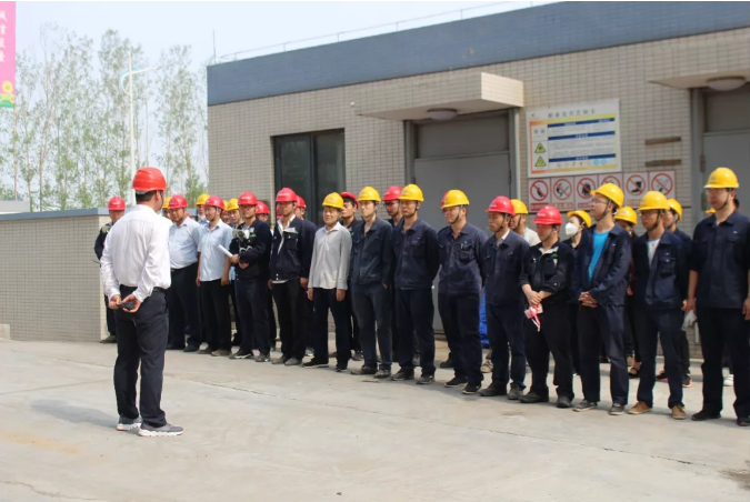 9时30分,演练正式开始。两名巡检人员发现氨水接卸作业时氨水泄漏、1名操作人员轻微中毒,逐级上报后,应急领导小组决定启动部门级应急预案。