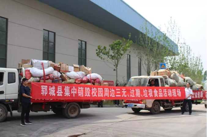 为深化“健康校园”、“平安校园”建设,加强校园及周边食品安全监管,保障师生身体健康和生命安全,6月25日,郓城县市场安全监督管理局在郓城威廉希尓指数500举行郓城县集中销毁校园周边三无、过期、假冒食品活动。郓城县市场监督管理局朱伟局长出席活动。