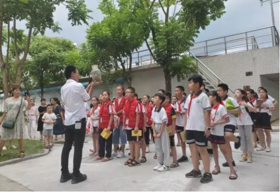 环保宣导员给小记者团讲解污水处理